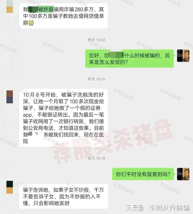 網(wǎng)友家人在騙子制作的虛假證券APP上,聽其推薦購買股票。為了達(dá)到詐騙目的,對方會提前告知家人不要講此事告訴子女,只會影響其發(fā)財(cái)。最終,網(wǎng)友家人通過購買黃金放置線下指定地點(diǎn)的方式,被騙280萬元!其中100多萬元都是家人通過網(wǎng)貸借款獲得。目前,網(wǎng)友已報(bào)案,但損失已經(jīng)造成,無力挽回。
