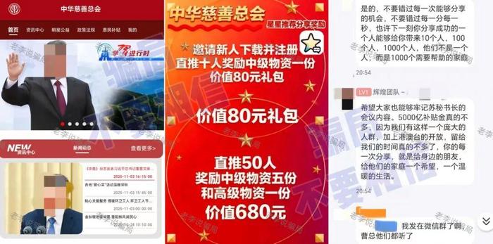謊稱為參與者發(fā)放補(bǔ)貼誘導(dǎo)用戶實(shí)名注冊(cè)下載,并以小額返利激勵(lì)參與者拉攏新人,套取用戶信息。