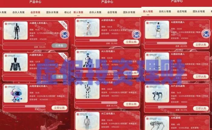 冒用正規(guī)500強(qiáng)企業(yè)為項(xiàng)目“鍍金”,推出多款A(yù)I機(jī)器人虛假投資理財(cái)項(xiàng)目,收益率遠(yuǎn)超市場(chǎng)正常投資水平。