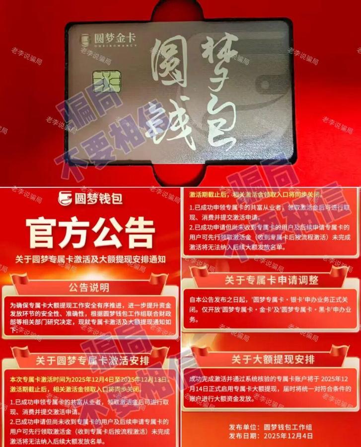 發(fā)表時(shí)間:2025-12-05 19:25作者:李旭反傳銷(xiāo)來(lái)源:李旭反傳防騙團(tuán)隊(duì) 快到年底,各類(lèi)騙局也到了集中“收網(wǎng)”的高峰期,開(kāi)始推出各種十分誘人的優(yōu)惠政策,或者以“提現(xiàn)”為名,借著“激活費(fèi)”“質(zhì)保金”“手續(xù)費(fèi)”等各類(lèi)名頭層層斂財(cái),為最終跑路鋪路,更有甚者干脆利落關(guān)網(wǎng)失聯(lián),只留下參與者面對(duì)“空包”兌現(xiàn)、提現(xiàn)無(wú)門(mén)的窘境。 今天這些項(xiàng)目中,大多數(shù)已經(jīng)出現(xiàn)無(wú)法提現(xiàn)、拖延兌現(xiàn)甚至直接跑路的情況。 請(qǐng)千萬(wàn)不要心存僥幸,及時(shí)止損才是硬道理! 1、套牌的“jin er” APP 前段時(shí)間推出大量?jī)?yōu)惠政策引得參與者瘋狂入金,但昨日,該項(xiàng)目突然無(wú)法提現(xiàn),團(tuán)隊(duì)長(zhǎng)集體消失。用戶收到的所謂的“黃金”包裹均為“空包”,疑似跑路。 ![]() 2、“某某娛魚(yú)”APP 短劇投流項(xiàng)目。用戶可在平臺(tái)充值“魚(yú)某豆”兌換“R”解鎖短劇投流或版權(quán)分紅。 早在幾個(gè)月前,該項(xiàng)目就已經(jīng)無(wú)法順利提現(xiàn),平臺(tái)為了安撫參與者,聲稱(chēng)會(huì)將本金分六期返還,但大多數(shù)參與者卻并沒(méi)有如約收到退款,只有個(gè)別用戶收到部分資金。目前,平臺(tái)還在不斷拖延,參與者正在想辦法維權(quán)當(dāng)中。 ![]() 3、MCN EX (MCN GLOBA) 打著“加密衍生品交易平臺(tái)”的旗號(hào)運(yùn)作,以“分合約”“帶單托管”等模式承諾15%-25%的高月化收益吸引用戶投入,宣稱(chēng)穩(wěn)賺不賠。通過(guò)動(dòng)態(tài)推薦、團(tuán)隊(duì)等級(jí)獎(jiǎng)勵(lì)的機(jī)制擴(kuò)張規(guī)模。 該項(xiàng)目違背金融交易基本風(fēng)險(xiǎn)規(guī)律,層級(jí)拉新的獎(jiǎng)勵(lì)模式涉嫌傳銷(xiāo),且其運(yùn)作無(wú)實(shí)際盈利支撐,本質(zhì)是靠新資金兌付舊收益的資金盤(pán)。 ![]() 4、虛構(gòu)的“圓夢(mèng)錢(qián)包”APP 以“提現(xiàn)”為誘餌,忽悠參與者繳納費(fèi)用申請(qǐng)激活所謂的“專(zhuān)屬卡”。注意!這是一個(gè)典型的境外騙局,卡片也是假的,根本不能取現(xiàn),請(qǐng)不要相信,避免進(jìn)一步擴(kuò)大損失! ![]() 5、套牌的“盛樹(shù)”APP 冒充境外“盛數(shù)投資管理”公司名義,利用其信息制作冒牌APP,兜售虛假投資理財(cái)產(chǎn)品。 11月8日,平臺(tái)關(guān)網(wǎng),聲稱(chēng)已將所有用戶積分兌換成USDT充值進(jìn)“盛述”新平臺(tái),并誘導(dǎo)參與者繳納“質(zhì)保金”激活。 此流程為項(xiàng)目崩盤(pán)后典型的二次收割行為,看準(zhǔn)了人們急于拿回本金的焦慮心理,進(jìn)一步斂財(cái),擴(kuò)大參與者損失。 ![]() 6、WebKey 用戶需購(gòu)買(mǎi)WebKey手機(jī)加入,號(hào)稱(chēng)內(nèi)置wkeyDAO幣,具備加速、多鏈空投、盲盒、零擼、廣告收益、分銷(xiāo)傭金、節(jié)點(diǎn)分紅、市值分紅等權(quán)益,同時(shí)配置內(nèi)置擼毛工具、AI搜索引擎插件等功能,高級(jí)別設(shè)備還可通過(guò)GPU芯片產(chǎn)出其他代幣。通過(guò)質(zhì)押獲得超高靜態(tài)收益,同時(shí)設(shè)置多級(jí)分銷(xiāo)模式。 該項(xiàng)目以Web3概念為包裝,通過(guò)“高額收益、多級(jí)分銷(xiāo)、代幣炒作”的模式吸引用戶,屬非法金融活動(dòng)。 ![]() 7、虛構(gòu)“上海合作組織開(kāi)發(fā)銀行” 冒充“上海合作組織”,兜售日利率超過(guò)2.5%的虛假理財(cái)產(chǎn)品,IP地址在大陸境外。 ![]() 8、套牌的“普徠仕”APP 冒充“普信國(guó)際”,兜售“納米細(xì)胞能量單元”、“AI驅(qū)動(dòng)類(lèi)器官培養(yǎng)系統(tǒng)”等年收益高達(dá)200%的虛假理財(cái)項(xiàng)目。設(shè)立8個(gè)級(jí)別給予“推薦獎(jiǎng)”、“分紅獎(jiǎng)”、“復(fù)投獎(jiǎng)”等動(dòng)態(tài)分潤(rùn)。 目前,該項(xiàng)目崩盤(pán)跑路,參與者正在積極維權(quán)當(dāng)中。但由于參與者自己全部通過(guò)銀行卡轉(zhuǎn)賬給個(gè)人,或兌換USDT充值,資金流向不明,損失很難挽回。 ![]() 9、虛構(gòu)的“中國(guó)崛起”APP “中影劇賺”轉(zhuǎn)移的新平臺(tái)。利用各種小額紅包吸引用戶介紹新人聽(tīng)課,認(rèn)購(gòu)產(chǎn)品。但無(wú)一次兌現(xiàn)承諾。 近日不斷以“激活費(fèi)”、“手續(xù)費(fèi)”等各類(lèi)名頭忽悠參與者繳費(fèi),已經(jīng)進(jìn)入收割階段,請(qǐng)及時(shí)止損! ![]() 10、鏈上牛牛(牛13) 以“Web3.0+DAO”為幌子,采用 三三復(fù)制、層級(jí)滑落、拉人頭返利的模式運(yùn)作。承諾“推薦、升級(jí)、提現(xiàn)”等100%收益,屬互助類(lèi)傳銷(xiāo)盤(pán) 。完全依賴(lài)新用戶資金維系,無(wú)實(shí)際業(yè)務(wù)支撐。 這類(lèi)項(xiàng)目一旦崩盤(pán),參與者將血本無(wú)歸,切勿輕信“高收益”陷阱,遠(yuǎn)離! ![]() 11、虛構(gòu)的“現(xiàn)代強(qiáng)國(guó)”APP 該項(xiàng)目冒充某部門(mén)的旗號(hào),虛構(gòu)理財(cái)項(xiàng)目實(shí)施詐騙,目前,網(wǎng)友反饋該項(xiàng)目已經(jīng)崩盤(pán)跑路。