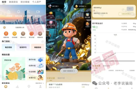 假借“發(fā)放500-600萬資助款”吸引實名注冊,套取個人信息后上架“數(shù)字黃金”“補貼”等虛假項目,誘導(dǎo)拉新“挖礦”。每日簽到獎勵實為無法提現(xiàn)的數(shù)字游戲,提現(xiàn)即被收割。