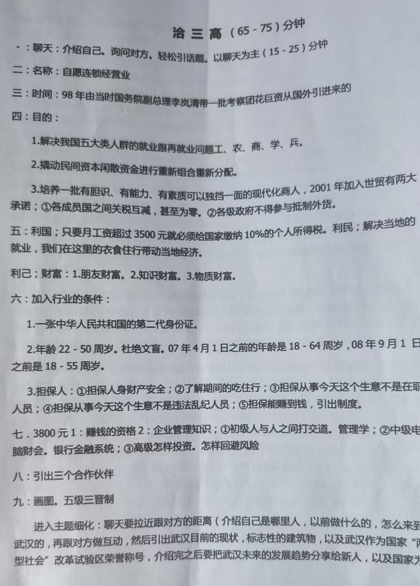 資料宣稱“自愿連鎖經(jīng)營業(yè)”是1998年引入,旨在解決就業(yè)、撬動民間資本、抵御外資沖擊,甚至關(guān)聯(lián)WTO承諾等宏大敘事。但事實上,該說法無任何官方文件佐證,純屬編造,將無產(chǎn)品、無實體、純靠拉人頭獲利的模式美化為“國家暗中支持”,純屬無稽之談。