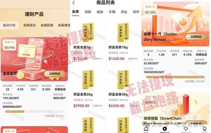 在推出大量?jī)?yōu)惠政策引得參與者瘋狂入金后,項(xiàng)目突然無法提現(xiàn),團(tuán)隊(duì)長(zhǎng)集體消失。用戶收到的所謂的“黃金”包裹均為“空包”,疑似跑路。