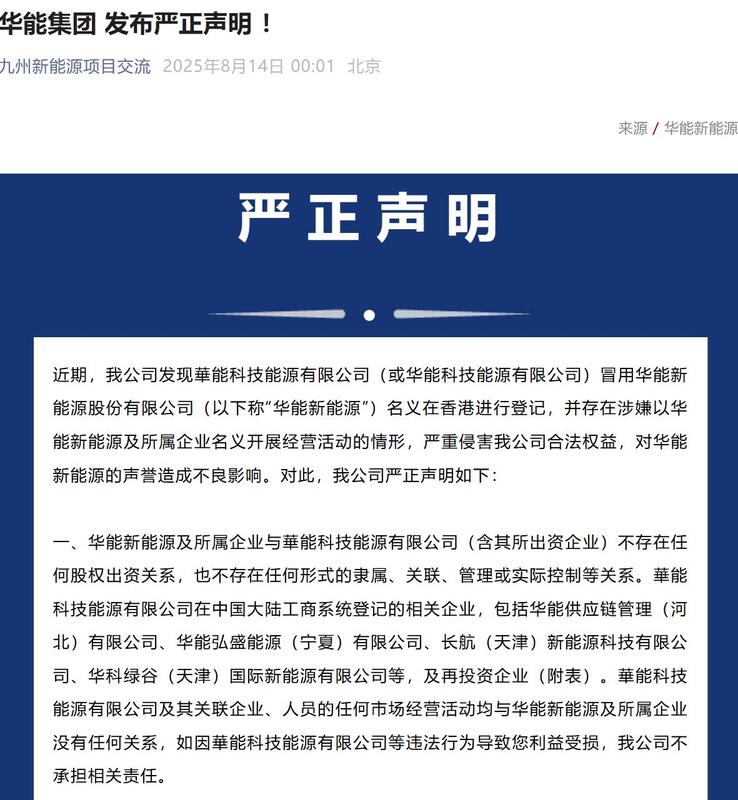 《假冒,中國華能嚴重聲明!》