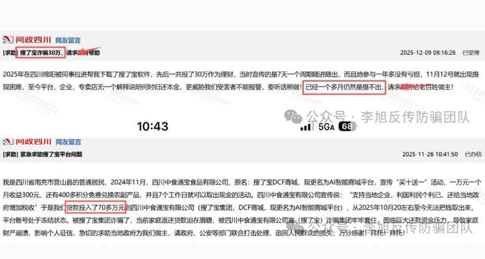 我們注意到,在“問政四川”平臺上,已有大批網(wǎng)友反映家人深陷其中,投入幾萬幾十萬元甚至貸款投資,從10月份開始就無法提現(xiàn)。