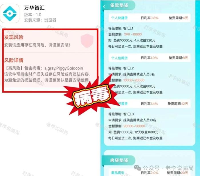 冒用官方”信息制作虛假APP,以每日簽到獲得小額紅包為誘餌吸引大眾,兜售超高收益率的虛假理財(cái)項(xiàng)目。