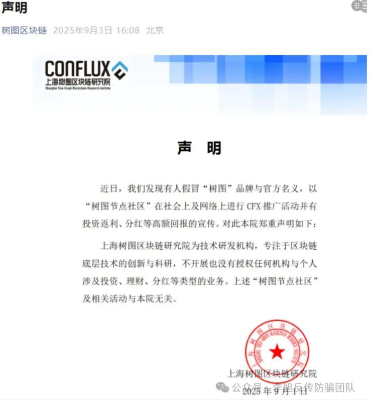 上海樹圖區(qū)塊鏈研究院發(fā)布聲明,證實其項目為騙局。