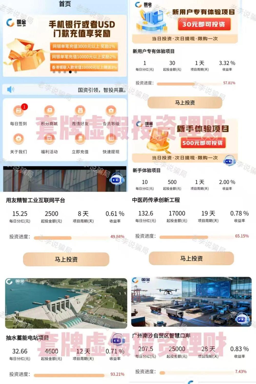 套用國企公司信息制作虛假APP,兜售收益率超高的虛假投資理財產(chǎn)品。利用短期小額新手體驗項目博取信任,在新人發(fā)現(xiàn)能夠順利提現(xiàn)后,逐步擴大投資金額,達到詐騙目的。其套路與已經(jīng)崩盤的“燁言APP”“展?jié)葾PP”完全一致。