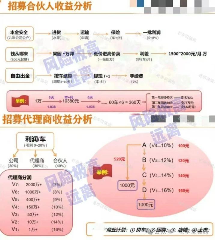 該平臺以水果生鮮為包裝,推出“合伙拼車方案”,參與金額500元起,宣稱可獲得0%-8%的每車利潤,結(jié)算周期為3-10天,提現(xiàn)需收取2%手續(xù)費。