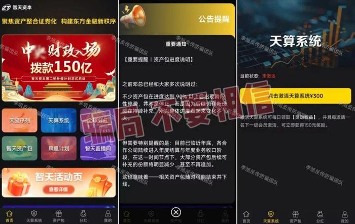 發(fā)表時間:2025-12-30 18:03作者:李旭反傳銷來源:李旭反傳防騙團(tuán)隊 臨近年底,不知道大家是不是總收到這類“零投入賺大錢”的邀請?這些項目說得天花亂墜,仿佛躺在家就能把錢賺了。 說起來,現(xiàn)在的騙子真是越來越“懂行”了,不再是簡單的花言巧語,反而包裝得越來越“高大上”。 一會兒蹭央企名義,一會兒扯AI、跨境電商的概念,甚至把“國學(xué)”“心靈療愈”都變成了圈錢的幌子。 實際上啊,這些看似誘人的項目,骨子里全是換湯不換藥的陷阱。 今天這些騙局,專門盯著中老年朋友的養(yǎng)老錢、血汗錢,套路藏得再深,也逃不過咱們的火眼金睛??煲黄饋砜匆豢础?/p> 1、久某私域 微商模式。通過社交平臺售賣多款日用產(chǎn)品,號稱一分錢不投,1~3個小時實現(xiàn)私域流量變現(xiàn)3~5位數(shù)。但細(xì)看其模式就可發(fā)現(xiàn)端倪。 平臺將銷售人員根據(jù)團(tuán)隊人數(shù)和累積售賣產(chǎn)品數(shù)量分為“學(xué)員”、“教練”、“總教練”三個大級別,每個級別的進(jìn)貨價格不同,每級利潤差在40元左右。 其中,又將“教練”級別根據(jù)進(jìn)貨價格分為“119教練”、“109教練”、“99教練”、“89教練”、“82教練”和“75教練”幾個等級,業(yè)績不清零,累計上級別。 當(dāng)團(tuán)隊內(nèi)擁有3個“75教練”升級為“總教練”,額外有培育獎和分紅。 在該項目參與者中還有一個身份叫做運營師,新學(xué)員每售出一套,其推薦人給運營師、運營師推薦人以及運營部按照15元、3元、2元的比例發(fā)放工資。 一系列政策的底層邏輯還是依靠拉人頭打著認(rèn)購產(chǎn)品的旗號加入,組建層級獲利,符合傳銷核心特征。 ![]() 2、智天資本(ZT Capital )APP 利用AI數(shù)字人冒充“鄧智天”本人制作虛假視頻,以各種補貼誆騙參與者下載該APP。又是“天算系統(tǒng)”,又是兜售各種資產(chǎn)包,其目的都是看中了老百姓的“錢袋子”。 ![]() 小編提示,千萬不要再相信任何打著“智天”旗號的項目,假的,全是假的! 相關(guān)閱讀《AI制作“假鄧智天”忽悠數(shù)十萬中老年,這些“智天”詐騙項目你知道幾個?》 ![]() 3、Meritz梅里茨 APP “攀智資本”APP崩盤跑路后,由原班人馬推出的新盤子。同樣打著“AI智能量化交易”選股,套路基本無差。 APP下載提示未備案且攜帶病毒,請務(wù)必遠(yuǎn)離! ![]() 4、國學(xué)類精神傳銷有害培訓(xùn) 網(wǎng)友戀人因加入某“國學(xué)傳統(tǒng)文化”身心靈療愈組織幾個月的時間,不顧親友反對,癡迷其中,嚴(yán)重影響正常生活。 據(jù)網(wǎng)友反饋,該組織名義上假借教授學(xué)員如何提高生活水平開展集會,從每月一次的集中學(xué)習(xí)變成多次私下家庭聚會。而每次集會都需要根據(jù)等級繳納千元至數(shù)萬元不等的高昂費用。 組織者會在集會上傳授所謂的心法,帶領(lǐng)學(xué)員打坐念經(jīng)冥想。不斷制造焦慮再通過自己所謂的“法力”為學(xué)員解決。致使學(xué)員對此深信不疑且瘋狂拉人頭。 2024年,公安機(jī)關(guān)就曾依法對借“靈修”等名義從事非法培訓(xùn)活動的機(jī)構(gòu)進(jìn)行嚴(yán)厲打擊,依法查處了一批打著“心靈療愈”“激發(fā)潛能”等旗號從事非法培訓(xùn)活動的組織。 公安機(jī)關(guān)鄭重提醒廣大群眾,務(wù)必對邪教及非法培訓(xùn)活動保持警惕,認(rèn)清其本質(zhì)與嚴(yán)重危害,自覺主動抵制。 詳情:花4萬上心理課卻被輪番“辱罵”?女子精神失常入院!上這種課要小心…… 5、套牌的“SenCity 森某生態(tài)”APP 冒充海南“森某生態(tài)”公司的名義,兜售“中稻顆粒歸倉”“華潤電力x湛江”等日利率高達(dá)0.65%-1.3%不等理財項目。宣稱用戶可“云租”樹木獲得0.6%-0.61%的收益。 邀請新人按照會員等級獲得三級收益分紅,同時根據(jù)人數(shù)以及個人充值金額完成等級晉升。 APP只能通過第三方鏈接下載,下載提示未備案,收款賬戶為第三方個人、公司。風(fēng)險極高,不要參與! ![]() 6、某森項目物流跨境電商 冒充海外抖音,打著跨境電商旗號,宣稱店主兌換美金墊資,由公司一件代發(fā)。 該項目已有多名參與者聲稱加入后,后臺訂單會越來越多,致使資金根本無法周轉(zhuǎn),被迫關(guān)店。 近段時間,此類打著跨境電商旗號的騙局逐漸增多,套路基本相似,后臺訂單全部依靠人為操縱,目的就是為了騙取店主投資款直至店主主動關(guān)閉店鋪,在騙取所謂的違約金、解凍金等等。請廣大投資者小心謹(jǐn)慎,仔細(xì)甄別。 ![]() 7、TM 安某財富 “鑫慷嘉”崩盤后的平移盤之一,同樣打著智能跟單旗號,以相同的套路斂財。目前已經(jīng)出現(xiàn)單割團(tuán)隊情況,請盡快遠(yuǎn)離! ![]() 8、某咔“盈利金三角”系統(tǒng) 宣稱“萬店聯(lián)盟+流量賦能”,以低投入高回報為噱頭,吸引創(chuàng)業(yè)者加入。設(shè)置三級投入門檻,從1.88萬到18.8萬,承諾“自用省錢、推薦賺錢、批發(fā)躺賺”,甚至給出年利百萬、三百萬的誘人數(shù)據(jù)。 但深入調(diào)查會發(fā)現(xiàn),其盈利核心高度依賴“拉人升級拿返利”“層級差價賺錢”,而非產(chǎn)品本身的市場競爭力。投入越高,獲得的折扣和返利權(quán)限越大,本質(zhì)是靠發(fā)展下線而非終端消費創(chuàng)造價值,這種模式已觸碰合規(guī)紅線。此外,萬店聯(li