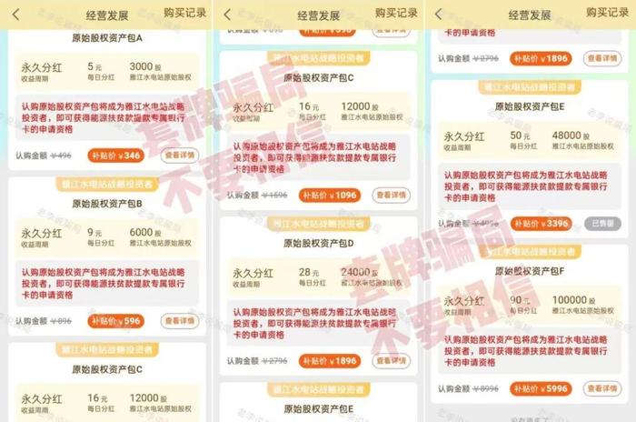 套用“雅江集團(tuán)”信息,冒充“雅江集團(tuán)”,已發(fā)放扶貧款吸引參與者,兜售虛假股權(quán)資產(chǎn)包。
