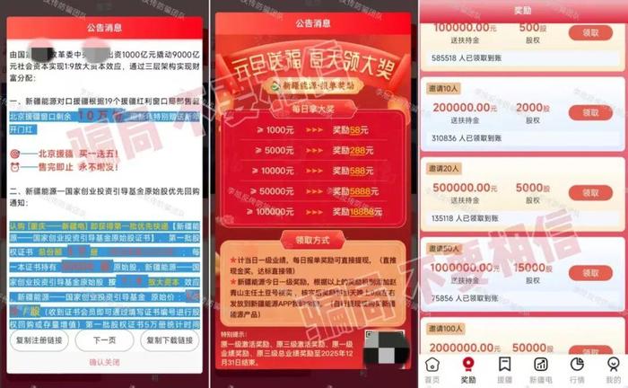 發(fā)表時間:2026-01-07 19:29作者:李旭反傳銷來源:李旭反傳防騙團隊 元旦的熱鬧氛圍還未散去,新一年的征程已悄然開啟。在這個充滿希望的時節(jié),許多人都在規(guī)劃新的財富路徑,期待生活更加豐盈美滿。 然而假期剛結束,我們后臺便收到了大量讀者留言。翻閱這些形形色色的APP名稱與轉賬截圖,我們發(fā)現今年年初出現的各類“項目”相比往年,包裝顯得更加“精巧”。 回顧往年規(guī)律,元旦前后常常是某些舊有“項目”進入尾聲、而新“項目”紛紛上線的交替期。 一些舊項目此前承諾的高額回報,往往以各種看似正式的理由開始收取費用; 而新項目則抓住大家在新年求變、追求財富的心態(tài),拋出令人心動的所謂“機會”。 無論外表如何變化,核心邏輯往往相似:先讓參與者看到賬面上看似可觀的“收益”,再以各種理由要求投入資金進行“激活”。 近期收集的案例中,手法雷同,話術也高度相似。將這些“項目”放在一起觀察便會發(fā)現,它們的收費名義往往集中在節(jié)后這幾天,要求用戶“辦理手續(xù)”。 這背后可能意味著某些活動即將收網,而新的“誘餌”正在準備中。 虛構的“鴻蒙AI錢包” 冒充“華為”名義,推出所謂“數字錢包”,以“領取20萬數字人民幣”為名吸引用戶下載并未通過審核的APP。 在APP界面中,推銷高息“鴻蒙股權”“鴻蒙基金”等虛假理財,并鼓勵發(fā)展下線。 該項目與華為官方無關,收款方為第三方個人或公司,請勿參與。 ![]() 虛構的“新疆能源”APP 以“援疆”為名推出多款高收益理財項目,承諾“原始股”回報,并按拉新人數發(fā)放“扶持金”。 該APP未通過備案,所售產品均為虛假項目。千萬別被騙了! ![]() ![]() 虛構的“富民通(富民計劃)”APP 在以多種名義收取用戶款項共計7次后,目前已停止所有線上會議,團隊負責人也不再發(fā)聲,疑似即將停止運營。 ![]() 虛構的“民生大事”APP 原本聲稱12月31日“下款”,但至今仍未兌現,反而以“捐贈”等名義繼續(xù)收取費用。請參與者及時止損,勿再投入。 套牌的“中國殘疾人聯合會(中國殘聯)”APP 以高額“助殘金”為誘餌,誘導用戶下載。近期以“提現需審計”為由,要求繳納30%費用,否則視為放棄。 這也導致了眾多參與者為了這根本不可能兌現的“收益”,一步步擴大損失。 ![]() 套牌的"玖福萊"APP 股票跟單騙局。以“智能跟單、穩(wěn)賺不賠”為口號吸引用戶參與股票投資。該APP未備案,通過第三方鏈接傳播。 為了規(guī)避監(jiān)管,收款方式更是大多利用虛擬鏈上充值,資金流向不明。部分通過銀行賬戶轉賬的投資金,收款方也為不同的個人賬戶或三方公司賬戶,具有典型資金盤特征。 虛構的“交聯圓夢”APP 冒充“國家項目”,以虛構的“交聯圓夢卡”、“簽到福利”、“受損補償金”等吸引參與者實名注冊下載。并鼓勵用戶拉新,以獲取不同等級的卡種。 APP下載提示未備案,是針對特定人群的精準詐騙。 ![]() ![]() 虛構的“幸福中國”APP 偽造資金流水、政策文件及上面講話,以“精準扶貧”“高額靜態(tài)收益”為名收取會費、投資款等等。 近日謊稱“辦理提現”,要求參與者根據賬戶資金繳納500—3萬元。為了增加可信度,群內不斷出現偽造的到賬截圖。 早在去年8月,岳麓公安就曾明確表示提示大家,千萬不要相信,這是一個騙局! 詳情→騙子又換新套路!“幸福中國”APP千萬不要信! ![]() 利用“我為三北種棵樹公益項目”實施的騙局 據網友反饋,不法分子利用“我為三北種棵樹”的公益項目,制作了虛假的網址,誘導人們點擊。 同時,平臺謊稱參與該項目每月可免費領取3000元收益,邀請一人即可獲得1萬元補貼。致使參與者下載“森語”APP每日簽到,為后續(xù)騙局的展開做準備。 小編根據網友提供的項目網址,利用虛假身份信息注冊后,絲毫沒有任何審核流程,就提示已經獲得該收益,可見項目不實。 小編提示,“我為三北種棵樹公益項目”確實存在,但并不需要從個人發(fā)布的網址鏈接進入,也并不需要填寫邀請碼,更沒有所謂的高額收益和拉新收益。任何打著此名頭承諾高額回報的項目,都是騙人的,請不要相信! ![]() 數字人民幣推廣 12月16日,中國人民銀行上??傂邪l(fā)布未風險提示,表明從未設立任何民間推廣中心,不存在數字人民幣推廣員考試。數字人民幣不具有炒作空間,不存在所謂“兌換補貼”或“流水返傭”,不會鼓吹高額傭金或炒幣高回報,不會誘導用戶泄露個人敏感信息和參與傳銷。請廣大網友仔細甄別。 詳情→關于防范“數字人民幣投資返現、有償推廣”等新型詐騙的風險提示 ![]() 套牌的“Miravia”APP 套用“Miravia”相關信息推出的虛假跨境電商旗號,以墊資一件代發(fā)誘導參與者加入。 10月4日,Miravia官方公眾號發(fā)布聲明,目前并無推出任何用于商家入駐的app或小程序,請不要相信任何未經驗證的來源或是第三方鏈接入駐Miravia。 詳情→謹防詐騙!這是一期給商家朋友們的特別聲明,入駐請認準Miravia官方渠道! ![]() 虛構的“共信中華”APP ![]() 虛構的“中國智造2025”APP ![]() 寧夏靈武“33500西部大開發(fā)”傳銷組織 虛構“人力資源雙向扶貧”項目,利用偽造政策文件和“黃金標志”,宣稱投資33500元回報300-500萬元。在寧夏銀川、賀蘭、石嘴山、甘肅金昌等地尤為活躍,該傳銷團伙都尤為活躍!詳情→ 河北雄安2437