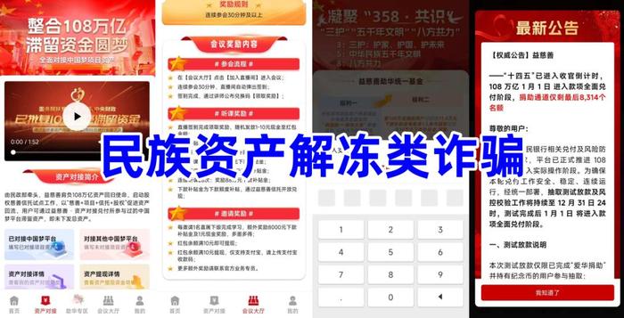 民族資產(chǎn)解凍類詐騙。不法分子冒充某部門的旗號(hào),聲稱要為“追夢(mèng)人”發(fā)放338萬(wàn)補(bǔ)償金。
