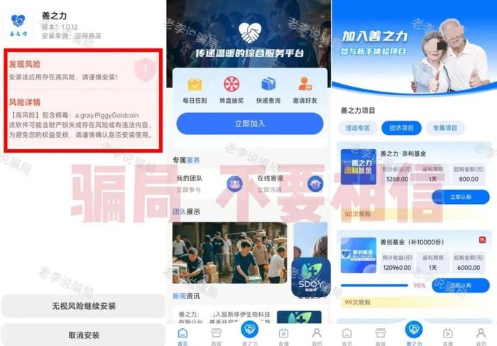 謊稱由“張某明”創(chuàng)辦,打著“慈善”旗號推出各類基金類虛假投資理財產(chǎn)品。實際上,“張某明”早在2017年9月就因涉嫌組織、領導傳銷活動罪被依法查處,目前仍在服刑中。、該項目利用慈善名義進行包裝,實則從事非法集資或詐騙活動,請大眾謹慎識別,遠離此類以慈善為名的理財騙局。