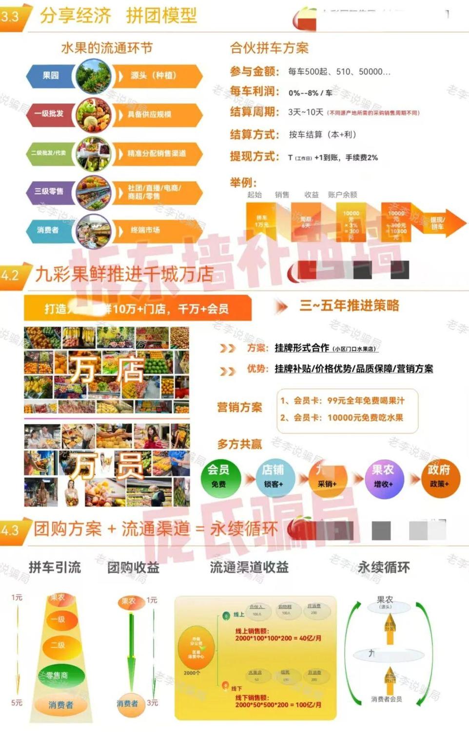 該項目以水果供應鏈為包裝,宣傳用戶可最低投入500元發(fā)起“拼車”活動,并承諾在3至10天的周期內(nèi)獲得0%至8%的收益。