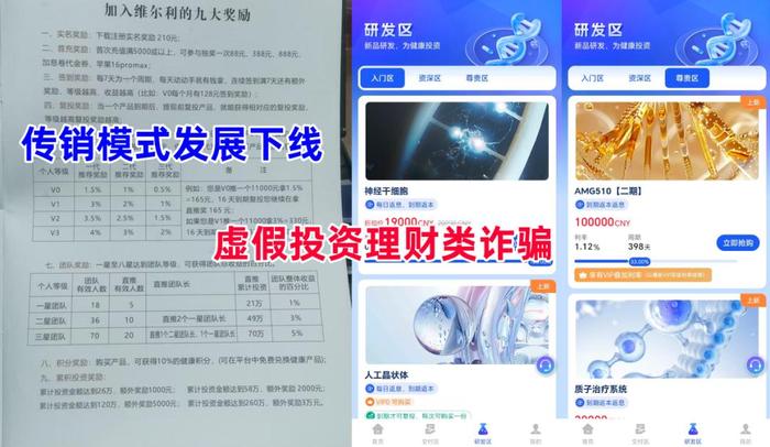 不法分子冒充香港某公司的名義,打著醫(yī)療科研的旗號(hào),制作散布涉詐APP,虛構(gòu)推廣“免疫細(xì)胞”“神經(jīng)干細(xì)胞”“人工晶狀體”等高額返利理財(cái)項(xiàng)目實(shí)施詐騙。