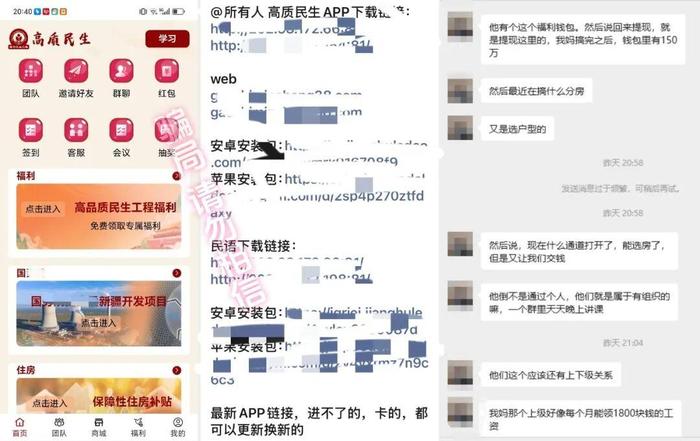 初期宣傳“提升民生福祉,注冊實(shí)名認(rèn)證即享福利政策”,吸引用戶完成身份認(rèn)證后,先是以“發(fā)放扶貧款”為由,要求繳納5499元“監(jiān)管費(fèi)”;近期又編造“福利房分配通道已打開”的謊言,誘導(dǎo)用戶繳納費(fèi)用。