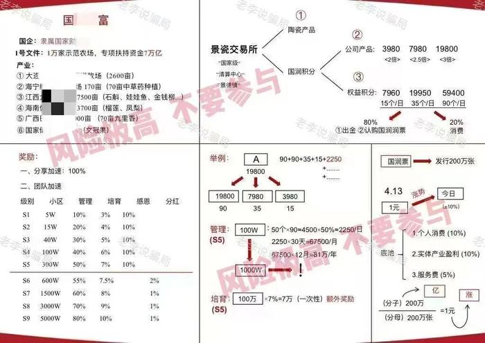發(fā)表時(shí)間:2026-01-21 19:37作者:李旭反傳銷來源:李旭反傳防騙團(tuán)隊(duì) 我們似乎總在尋找一條能更快抵達(dá)更舒適生活的捷徑。這份對(duì)更好生活的向往,本無過錯(cuò)。但你是否察覺,在找尋的途中,那些最具誘惑力的承諾,可能就突然出現(xiàn)。 它們初期常會(huì)給予些許甜頭,讓人放松警惕。給人一種確實(shí)能夠提現(xiàn),也能到賬的錯(cuò)覺。但這樣的目的就是為了讓人們投入更多,并邀請(qǐng)更多人加入。 直到某天,訂單莫名暴增、提現(xiàn)規(guī)則突然更改、或是所謂的“老師”消失,才突然驚醒,賬戶里看似高額的回報(bào)本來就是無法兌現(xiàn)的一串?dāng)?shù)字。 今天這些項(xiàng)目都不是天上掉下的餡餅,而是陷阱! 1、Auryss 奧瑞斯 等級(jí)劃分竟多達(dá)13層,從下載APP開始就彈出“高風(fēng)險(xiǎn)”提示。 該平臺(tái)自上線以來,已多次“單割團(tuán)隊(duì)”。封號(hào)理由更是五花八門。無論是提現(xiàn)金額超過充值金額還是不發(fā)展下線,甚至交易太頻繁都可能被強(qiáng)行封禁,本金和收益一夜歸零。 將自己的血汗錢交給一個(gè)來歷不明、規(guī)則隨意的平臺(tái)操控,無疑是羊入虎口。 請(qǐng)投資者務(wù)必警惕所有承諾“帶單穩(wěn)賺”的境外合約盤,它們的最終目的很有可能都是為了吞掉你的本金。 ![]() 2、假冒的“Style Hub”APP(跨境電商) 冒充香港某電商旗號(hào),以“一件代發(fā)、零元開店”為誘餌,吸引用戶開設(shè)跨境電商網(wǎng)店。 網(wǎng)友去年10月參與其中,前期還可正常提現(xiàn),但后期訂單量突然暴增,網(wǎng)友自己根本無力周轉(zhuǎn),平臺(tái)開始拒絕提現(xiàn)。 年初,平臺(tái)利用虛假文件通知會(huì)員繳納所謂的“個(gè)人所得稅”,而后網(wǎng)站無法打開,APP無法登陸,疑似關(guān)網(wǎng)。 據(jù)網(wǎng)友反饋,該平臺(tái)的收款方并非公司對(duì)公賬戶,而是十多家不同的境內(nèi)公司賬戶。 ![]() 此套路是非常典型的跨境電商騙局,各地帽子叔叔都曾對(duì)此類騙局套路進(jìn)行詳細(xì)解讀。 他們大多都是利用虛假網(wǎng)址,打著零元開店旗號(hào)人為操作后臺(tái)訂單,致使店主違約或者限制提現(xiàn)。還請(qǐng)廣大投資者不要輕信網(wǎng)上“一件代發(fā)”“無需囤貨”“穩(wěn)賺不賠”的跨境電商平臺(tái)廣告。 零元開店、無需貨源,跨境電商騙局從這里開始 這樣的“跨境電商”,不是暴富機(jī)會(huì),而是血本無歸! 3、國某某富景瓷交易 標(biāo)榜國企背景,將“景瓷”作為交易工具在參與者之間進(jìn)行炒作。宣稱不但可以獲得產(chǎn)品,還可以獲得相應(yīng)積分,聲稱可每日按固定比例上漲,實(shí)現(xiàn)“穩(wěn)賺不賠”。 同時(shí),平臺(tái)設(shè)置9層推廣獎(jiǎng)勵(lì),依據(jù)下線業(yè)績(jī)計(jì)提不同比例“管理獎(jiǎng)”“培育獎(jiǎng)”等,這模式已經(jīng)符合傳銷特征。 而且,這些產(chǎn)品的標(biāo)價(jià)遠(yuǎn)高于市場(chǎng),參與者最終會(huì)將重點(diǎn)完全側(cè)重在獲得那些承諾可獲得高額回報(bào)的“權(quán)益積分”上,這種“消費(fèi)全返”“積分只漲不跌”的話術(shù)違反經(jīng)濟(jì)規(guī)律。 一旦后續(xù)用戶不足,積分便很難變現(xiàn),整個(gè)模式難以支撐運(yùn)營,參與者將面臨損失全部本金的風(fēng)險(xiǎn)。 ![]() 4、九某某瑞恒指跟單 宣稱由“專業(yè)老師”帶隊(duì)操作恒生指數(shù),承諾“買漲買跌都能賺”,套路與已崩盤的“眾期科技”如出一轍。 稍有金融常識(shí)的人都清楚,恒指受全球經(jīng)濟(jì)形勢(shì)、政治事件、利率變化、企業(yè)業(yè)績(jī)等多種因素影響,波動(dòng)難以精準(zhǔn)預(yù)測(cè),根本不存在長(zhǎng)期穩(wěn)賺的策略。所謂“跟單”只是讓您將資金置于其操控的虛假平臺(tái)內(nèi),最終通過滑點(diǎn)、宕機(jī)、封號(hào)等方式完成收割。 銀保監(jiān)曾提示廣大投資者,高收益意味著高風(fēng)險(xiǎn),收益率超過6%的就要打問號(hào),超過8%的就很危險(xiǎn),10%以上就要做好準(zhǔn)備損失全部本金。切勿相信任何“零風(fēng)險(xiǎn)、高收益”的金融投資。 ![]() 5、套牌的“永安國際”APP 冒充香港“永安國際”公司的名義,制作假的APP,想?yún)⑴c者推廣“期貨”“基金”“債券”等日利率0.49%以上高額返利項(xiàng)目。 APP無法通過應(yīng)用商城下載,未通過備案,資金U進(jìn)U出,缺乏監(jiān)管,遠(yuǎn)離! ![]() 6、“與健同行”APP 云數(shù)貿(mào)系列騙局。利用“350萬圓夢(mèng)金”吸引參與者實(shí)名注冊(cè)加入。邀約新人還有更多獎(jiǎng)勵(lì)。 這是最典型的 “民族資產(chǎn)解凍”類詐騙前端引流手段。目的是零成本獲取大量公民個(gè)人信息,用于后續(xù)精準(zhǔn)詐騙或出售。 7、山西晉中49800傳銷組織 該組織通常以“民間互助理財(cái)”“分享經(jīng)濟(jì)財(cái)富論壇”等名義,在各大五星級(jí)酒店召開集會(huì)。宣稱參加者繳納49800元獲得加入資格,并按照發(fā)展層A、B、Cl、C2、C3順序組成層級(jí),出局可獲450萬元。 網(wǎng)友去年被朋友以考察項(xiàng)目為名帶去聽課,隨后繳納49800元參與其中。期間多次提出退費(fèi),但均被駁回,與當(dāng)初的種種承諾大相徑庭,網(wǎng)友這才確定這是一個(gè)騙局。 49800賺4