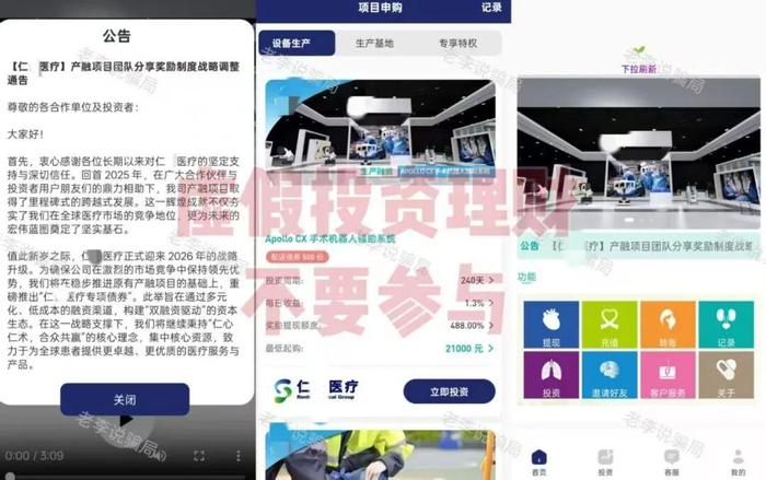 假借知名醫(yī)療企業(yè)之名,推出各類“理療系統(tǒng)”理財(cái)產(chǎn)品,其宣稱的年化收益率高到脫離醫(yī)療行業(yè)實(shí)際盈利水平。