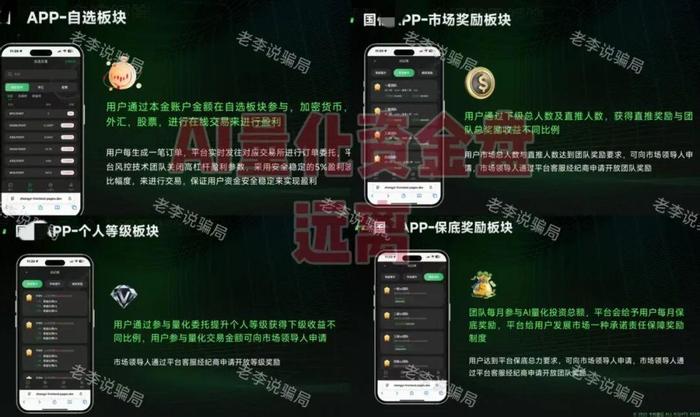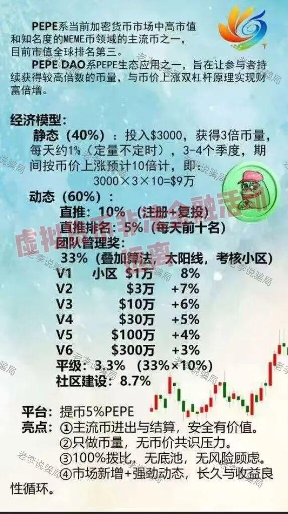 發(fā)表時間:2026-02-02 18:31作者:李旭反傳銷來源:李旭反傳防騙團隊 天下真有不勞而獲的好事嗎? 那些承諾“日入幾百”“月賺數(shù)萬”的項目,既沒有實際的盈利業(yè)務支撐,又能憑空給出超高回報,錢到底從哪里來? 這些騙局就像裹著糖衣的毒藥,甜味還沒嘗夠,苦頭就已經(jīng)找上門 它們換著花樣換名頭,卻始終逃不開“拉人頭、收門檻費、靠新血填舊坑”的核心套路 今天就來拆解這些騙局的真面目,幫你看清那些看似誘人的宣傳背后,藏著怎樣的陷阱,守住自己的辛苦錢 1、某某云店 消費返利模式。 打著“數(shù)字電商”“消費增值”的旗號,宣稱免費注冊就送綠色積分,消費399元能升級成“商家用戶”,不僅能拿產(chǎn)品,還能讓積分加速置換。消費者平時購物能返1-3倍積分,看個短視頻就能把積分換成消費券,能購物、能轉賬,甚至商家還能收購,還有砍價專區(qū),分享砍價所有人都能分錢。 模式看著挺誘人,但自己研究就會發(fā)現(xiàn),它的核心收益根本不靠賣貨賺錢。 不管是積分置換還是拉人給的20%消費券獎勵、層級加速福利,本質都是“拉人頭賺收益”。 用戶想要高回報,就得不停拉新用戶買399元套餐,發(fā)展下線當“零售商”“批發(fā)商”。實際上完全是靠新用戶的錢給老用戶發(fā)返利,典型的“拆東墻補西墻”。 ![]() 其次,所謂的“消費券出口”看著多,但沒有實際的盈利業(yè)務支撐。平臺本身不賣貨賺錢,全靠用戶投入的399元、后續(xù)消費和商家入駐的費用維持,一旦沒人愿意新加入,或者投入的錢跟不上返利需求,整個盤子就會崩掉。 類似模式的“我店”項目就是前車之鑒。請務必小心! “我店”急劇擴張宣稱會員數(shù)3000萬,被曝積分返利延遲,公開募集原始股或踩紅線 2、“藍某傳城”APP 這個項目打著“公益”旗號,聲稱參與者“捐贈”1000元后,每月可獲得200元收益,拉人越多,收益越多。但項目本身沒有任何商品,更談不上盈利模式,所有收益全部來自“拉新”返利。且返利資金均由推廣員通過微信轉賬的方式發(fā)放給參與者。其套路完全符合“入門費、拉人頭、團隊計酬”的傳銷特征。 ![]() 同時,該平臺還推出了“某某惠”項目,打著“消費增值”“綠色積分”的旗號,向參與者收取高額代理費用。兩個平臺互相引流,目的就是看重參與者的本金。 ![]() 3、PEPE 該項目宣稱“PEPE”是加密貨幣市場高市值MEME主流幣,可實現(xiàn)財富倍增。 靜態(tài)部分需投入3000美元,聲稱能獲得3倍幣量、每日釋放約1%,3-4個季度完成兌付,還預計幣價上漲10倍對應收益達9萬美元。 而動態(tài)部分則設置直推獎勵、團隊管理獎等,以拉新參與的方式獲取額外收益,平臺同時收取5%提幣費。 但“PEPE”本身無實際應用與穩(wěn)定價值支撐,其“高收益承諾”根本無法兌現(xiàn)。動態(tài)部分的層級獎勵、“小區(qū)”考核等,更屬于典型的傳銷式拉人頭模式。 ![]() 同時,根據(jù)我國相關規(guī)定,虛擬貨幣不具有與法定貨幣等同的法律地位,不具有法償性,不應且不能作為貨幣在市場上流通使用,虛擬貨幣相關業(yè)務活動均屬于非法金融活動。詳情→ 無論從哪個方面出發(fā),這個項目的風險都非常高,請投資者務必警惕,以免造成嚴重經(jīng)濟損失。 4、中某某億 打著“AI量化交易”旗號向參與者承諾0.8%-1.2%的日收益及月度保底收益。 用戶需通過投入資金升級VIP等級,除自身投入外,直推他人參與可獲取1%-3%的層級收益,團隊規(guī)模達標還能領取月度保底獎勵。 但股票、加密貨幣、期貨均受市場波動影響,本就無法保證穩(wěn)賺不賠,承諾的穩(wěn)定收益實質來自新用戶投資款。 ![]() 5、鈴某AI寫小說 平臺聲稱依靠AI分身寫小說賺取收益,用戶投資1480元視為加入,隨后AI分身自行接取任務,根據(jù)接取任務報酬金額,每日可獲得8-15元收益。參與者需向下發(fā)展10名下線,以金字塔模式組建團隊,享受5層10%收益。 日,平臺推出所謂的福利政策,聲稱根據(jù)用戶充值金額每日返利,最高一天可收益6千元,換算成年利率,已經(jīng)高達10950%!這幾乎是任何投資都不可能實現(xiàn)的回報率。 ![]() 6、“益慈善”APP ”繼“愛華捐助”、“確權兌付”之后,再次以“協(xié)議保證金”的名義開啟了第三次收費,要求用戶繳納1680元。 這就是典型的“最后一搏”。很多項目都會在跑路前,利用用戶“已經(jīng)投了錢,不舍得放棄”的心理,最大限度地榨取剩余價值。參與者們還是盡快止損吧。 ![]() 7、“亞太發(fā)展2026”APP 冒用“亞太經(jīng)濟合作組織”名義制作虛假APP。利用虛假“亞太發(fā)展專享卡”吸引大眾,套取用戶信息。 ![]() 誘導用戶認購虛假原始股獲得所謂的“穩(wěn)定幣”,但收款方賬戶確實不同的第三方個人或公司賬戶。 同時,設置不同成績的“合伙人”制度,宣稱用戶繳納不同費用完成申請,每月可根據(jù)級別領取分紅。 但這個項目的APP未通過備案,只能通過第三方鏈接下載,下載就提示存在高風險! ![]() 8、“華信達”APP 該項目更名“數(shù)智國際”,以相同的套路繼續(xù)忽悠,遠離! 9、山西49800傳銷組織 民間互助理財類傳銷組織。主要宣講“公排跳排,大盤小盤”。打著“分享經(jīng)濟、財富論壇”旗號,聲稱投資49800元,滿點能賺450萬。在高檔酒店或者出租屋對新人進行洗腦,號稱“就算一個人不發(fā)展也可‘保本彈出