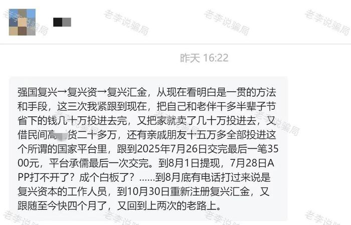 2025年7月,原本聲稱8月1日提現(xiàn)的“強國復興”在收取用戶最后一筆費用后突然關網(wǎng)跑路。
