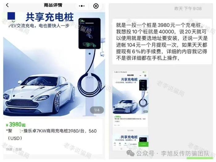 這類“租賃充電樁”投資騙局層出不窮,往往用初期小利誘騙投資者加大投入,甚至發(fā)展下線,最終卷款跑路。