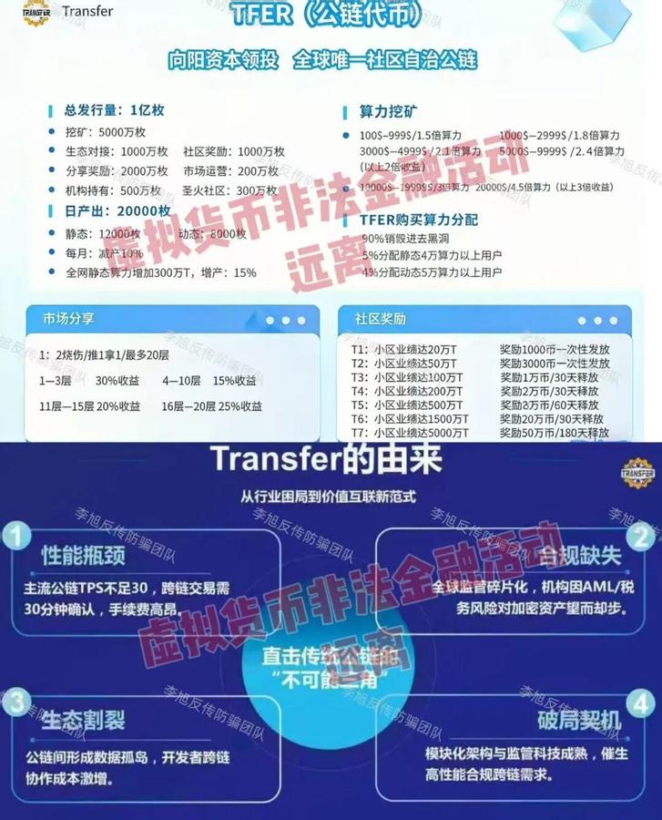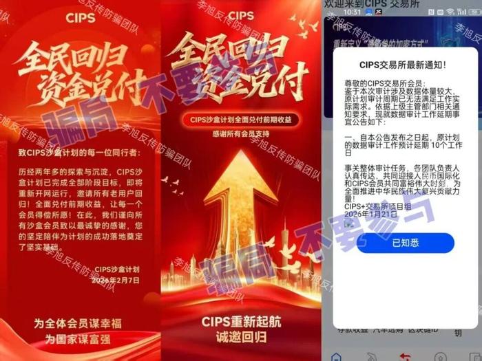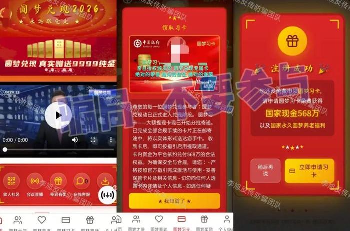 發(fā)表時間:2026-02-26 12:03作者:李旭反傳銷來源:李旭反傳防騙團隊 今天就是小年了,先祝各位老友及其家人都能像灶糖一樣——日子甜甜,團圓黏黏 老話說“二十三,糖瓜粘”,咱們用糖瓜粘住灶王爺?shù)淖?,是盼他“上天言好事?/p> 可到了網(wǎng)上,騙子們也學(xué)會了這。他們用話術(shù)當(dāng)“糖”,用高息當(dāng)“蜜”,專門粘住那些盼著好消息、等著好回報的人的眼睛和心 年關(guān)近了,各種“兌付紅包”“政策補貼”“穩(wěn)賺理財”的鏈接又在群里、朋友圈里悄悄冒頭 可越是這種時候,咱們越得清醒 今天,我們再次整理出近期一批活躍的騙局項目。闔家團圓之際,不要讓騙子鉆了空子 花幾分鐘看一看,做到心里有數(shù) 有些陷阱,提前知道,也許就能避開,有些套路,早一步識破,也許就能守住辛苦錢 糖瓜能粘灶王嘴,騙子的“糖”可千萬別粘住您的判斷力 01“新CIPS”APP 原名“CIPS沙盒計劃”,是一個冒充“人民幣跨境支付系統(tǒng)”的詐騙項目。 早在2024年,跨境銀行間支付清算有限責(zé)任公司就已明確聲明:從未任何面向社會的投資項目,包括“CIPS沙盒計劃”。 七星關(guān)公安也曾發(fā)布預(yù)警,提醒廣大群眾遠離該項目。 然而最近,這個騙局又以“全民回歸、資金兌付”的名義卷土重來,聲稱老會員回歸可以兌現(xiàn)原有資產(chǎn)。 當(dāng)心!任何所謂“重啟”“開網(wǎng)”的項目,都是騙子為了繼續(xù)騙錢而放出的誘餌,專門瞄準老用戶“回本”心切的心理,誘導(dǎo)他們再次投入資金。 ![]() 02金鑰匙Web3.0(Golden Key) 打著黃金保值+WEB3.0的旗號,宣稱購買黃金就贈送GDK權(quán)益憑證和數(shù)字通證。 同時設(shè)立創(chuàng)客、代理商等級別,靠拉人頭獲取直推、間推獎勵,并按團隊業(yè)績進行分級提成。 但明眼人一看就明白,它的核心收益并不來自真實的黃金業(yè)務(wù),而是靠拉人頭進行層級計酬,屬于典型的龐氏騙局。一旦沒有新人加入,資金鏈瞬間就會斷裂。 而所謂的“GDK通證”其實是國家明令禁止的虛擬代幣,沒有任何合法金融資質(zhì),價值完全由平臺操控,說歸零就歸零。 平臺僅留5%資金用于運營,連基本的黃金倉儲、交割成本都無法覆蓋,商業(yè)模式完全不具有可持續(xù)性。請務(wù)必遠離! ![]() 03“一老一小”APP 偽造“國家政策”,謊稱注冊即可領(lǐng)取“274萬養(yǎng)老金補貼”,又以“數(shù)字人民幣可兌換房產(chǎn)、豪車”為誘餌拉攏新人,小編此前已多次預(yù)警。 近期,這個項目又推出所謂“二折稅務(wù)折扣券”繼續(xù)向參與者收取費用。 該APP未在工信部備案,服務(wù)器設(shè)在境外,是典型的“民族資產(chǎn)解凍”類詐騙。 遇到這類“天上掉餡餅”的宣傳,一定要保持理智,盡早遠離。 04“與國同行”APP 冒用“中國政企合作基金”公司的名義,虛構(gòu)推廣“政企港股上市原始股”“政企穩(wěn)定發(fā)展債券”等高收益理財項目。 ![]() 盡管中國政企合作基金早已發(fā)布聲明,表示從未授權(quán)任何平臺開展線上投資業(yè)務(wù),但仍有很多人因為貪圖高額返利,不顧真?zhèn)蚊つ繀⑴c。 理財一定要通過正規(guī)金融機構(gòu),凡是承諾高額回報、穩(wěn)賺不賠的,基本都是騙局。 05“全民化債”APP 針對負債群體,聲稱由財政部等四部門發(fā)放50萬億化債專項資金,引誘不明真相的中老年人為了“化解債務(wù)”實名注冊下載。同時利用各種“股權(quán)”、“現(xiàn)金”獎勵忽悠用戶繼續(xù)拉攏新人。 但這些獎勵實際都是“空中樓閣”,待到兌現(xiàn)之日,各種費用很可能接踵而至,造成嚴重經(jīng)濟損失。 大家切勿因債務(wù)壓力大而病急亂投醫(yī),造成二次傷害。 ![]() 06“國夢金橋”APP 號稱“三資”項目,打著“盤活資產(chǎn)”、“發(fā)放紅利”為名忽悠參與者拉人加入,辦理所謂的“財富金卡”、“黑金卡”等等。 事實上,該軟件只能通過不明鏈接下載,且下載提示未備案。 任何國家政策補貼都有公開、規(guī)范的申領(lǐng)渠道,絕不會在未備案的APP中隨意發(fā)放。 07套牌的“河南礦山”APP 冒充河南礦山公司,以發(fā)放扶貧款為名,推行日收益率高達3.5%的虛假理財項目。 稍有投資常識的人都知道,合法的理財產(chǎn)品年化收益率都難以達到這個數(shù)字,日收益3.5%純屬天方夜譚。 這無疑是用后來者的本金支付前者的利息,隨時會崩盤。 ![]() 08“智天人民幣”APP “智天金融”傳銷組織早已被查處。但近年來不斷有人冒充該公司及負責(zé)人鄧某天的名義進行詐騙。 該項目聲稱發(fā)放專屬補償款,實名注冊即可領(lǐng)取智天穩(wěn)定幣、國補金、原始股等等,甚至承諾存款可獲得1000倍回報。 該APP只能通過未知鏈接下載,提示未備案且攜帶病毒。收款賬戶也均為不同的個人賬戶。 ![]() 09Transfer 宣稱用戶購買“算力”可挖TFER代幣賺錢,拉人頭還能獲得最多20層的分享收益,團隊達標(biāo)另有社區(qū)獎勵。聽著仿佛能“躺賺”,實則全是坑。 首先,我國明確禁止虛擬貨幣發(fā)行與交易,TFER這類空氣幣不受任何法律保護。就是平臺隨便發(fā)的數(shù)字,一旦崩盤,手里的代幣就是一堆沒用的字符,投的錢連影子都找不到。 其次,拉人頭拿多層收益是典型的傳銷模式,本質(zhì)是用新人的錢給老人發(fā)收益,一旦新人斷流便難以維持。 其所吹噓的“5000+TPS”“鎖