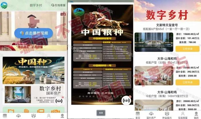 打著“數(shù)字鄉(xiāng)村”旗號,利用“免費申請三亞、??诜慨a(chǎn)“等極具誘惑力的回報吸引參與者。并向其兜售“中國糧種”理財產(chǎn)品,承諾高額上市分紅。