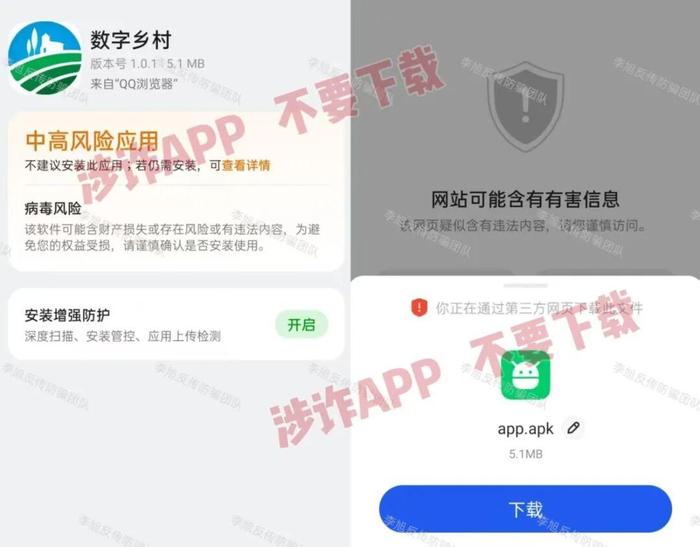 小編在平臺內(nèi)收集資料時,系統(tǒng)就反復(fù)彈出“該網(wǎng)站存在違法內(nèi)容,可能導(dǎo)致財產(chǎn)損失”的風(fēng)險警告。大家不要下載。