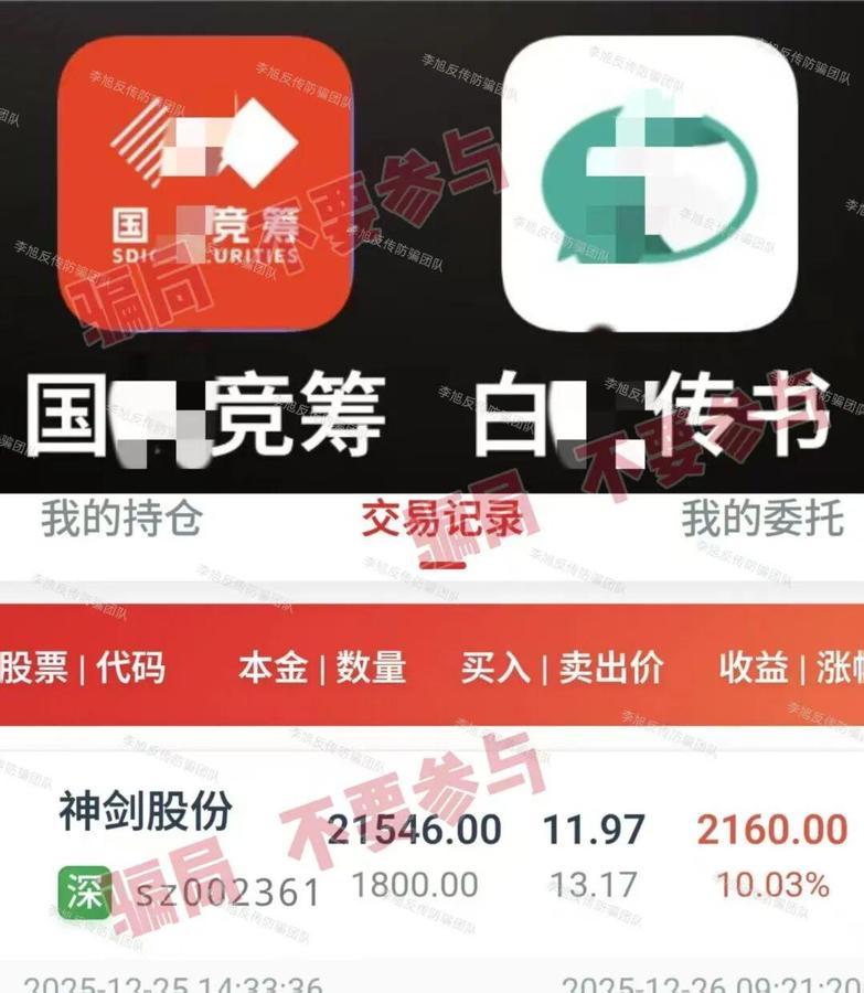 網(wǎng)友在某短視頻平臺被“教人炒股”的廣告吸引拉至某群聊當(dāng)中,隨后根據(jù)要求下載“國某競籌”“白某傳書”等APP,在群內(nèi)所謂的“專家”指導(dǎo)下進行跟投。但去年年底,網(wǎng)友突然被拉黑,APP無法登陸,網(wǎng)友這才發(fā)覺APP后臺數(shù)據(jù)都是假的,自己前后損失3萬7千余元。