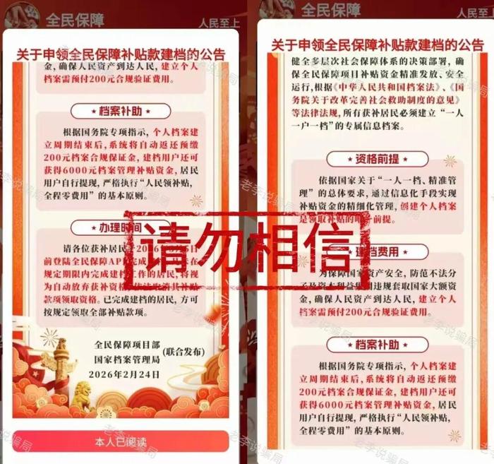謊稱“國(guó)家項(xiàng)目”,以“建檔”為由向參與者收取200元建檔費(fèi)并騙取用戶詳細(xì)個(gè)人身份信息。謊稱完成建檔可獲得6000元補(bǔ)貼。