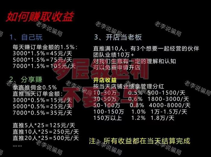 更值得注意的是,這個(gè)項(xiàng)目采用了網(wǎng)格化管理的模式,這是騙子為了分散運(yùn)營、逃避監(jiān)管特意設(shè)計(jì)的,就算多個(gè)店鋪因運(yùn)營問題關(guān)閉,也不會影響項(xiàng)目本身繼續(xù)行騙。目前多地執(zhí)法部門都曾對此類項(xiàng)目發(fā)出過風(fēng)險(xiǎn)預(yù)警,廣大投資者一定要提高警惕,堅(jiān)決遠(yuǎn)離!