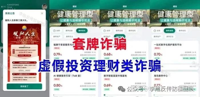 包裝成政府康養(yǎng)項目的資金盤。設(shè)置1000元的參與門檻,承諾高額回報。但實際上,這些康養(yǎng)投資項目根本不存在,很有可能還沒到期就卷款跑路了。面對這類打著康養(yǎng)旗號的投資項目,大家一定要多留個心眼,盡早遠離才是最穩(wěn)妥的。