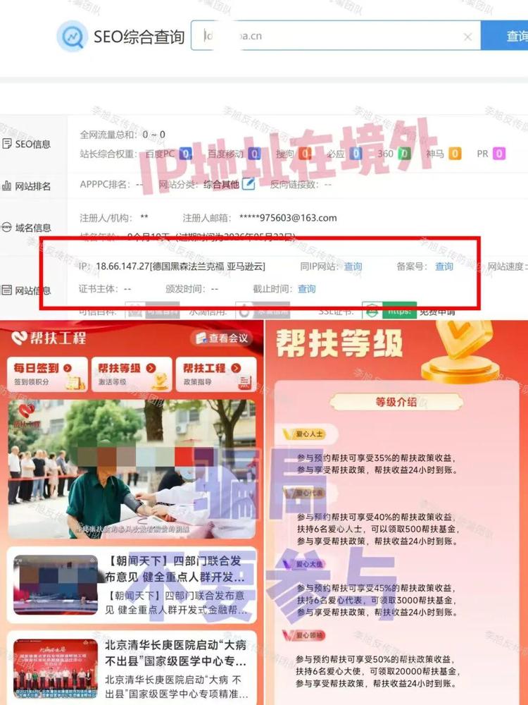 正規(guī)的幫扶項目,不僅不會收取任何形式的費用,還會在官方政務平臺等正規(guī)渠道公示,但這個軟件未通過備案,IP地址也在境外。