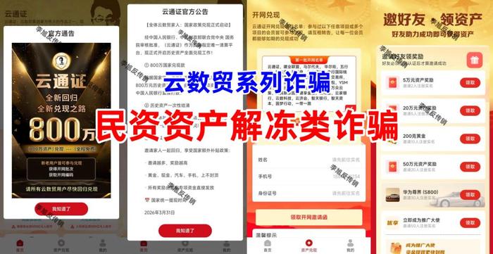 不法分子打著傳銷組織“云數貿”張健的旗號,打著資產清算的名義,制作散布涉詐APP,聲稱曾經參與過云數貿系列的追夢人,實名注冊可領取800萬兌現(xiàn)款,邀請的人越多,收益越多。