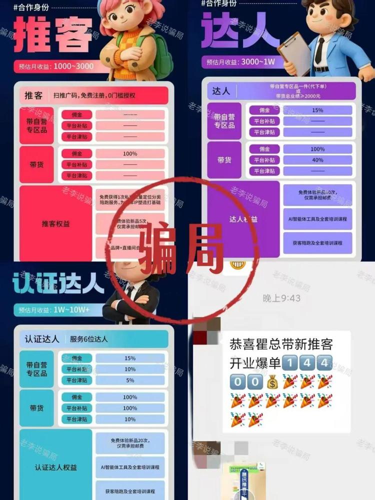 承諾一對一指導(dǎo)、輕松開店賺錢。但想加入,先要花幾百元購買產(chǎn)品。之后,想賺更多錢或者解鎖權(quán)益,就需要不斷“復(fù)購”產(chǎn)品,或者拉更多人加入。群里每天曬出的“爆單截圖”,都是為了刺激您拉人頭的宣傳素材。