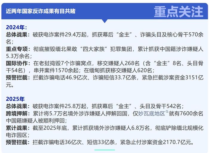 但小編想跟大家說:國家從未停下反詐打擊的腳步,雷霆行動(dòng)更是從未間斷,可詐騙分子狡猾多變,境外團(tuán)伙藏匿隱蔽,即便打擊力度持續(xù)加大,也無法做到徹底根除。比起一味等待外部管控,提高自身反詐意識(shí),主動(dòng)識(shí)別騙局,才是守護(hù)錢袋子的核心關(guān)鍵。