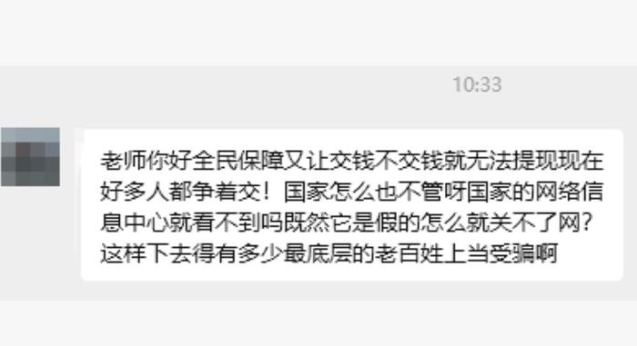 就拿網(wǎng)友提到的這個(gè)“全民保障”項(xiàng)目來說,號(hào)稱是“國家項(xiàng)目”“官方福利”,卻用來路不明的個(gè)人賬戶收款、軟件下載也只能通過非正規(guī)鏈接,種種跡象,其實(shí)稍微多留個(gè)心眼、多問一句,就能識(shí)破破綻。