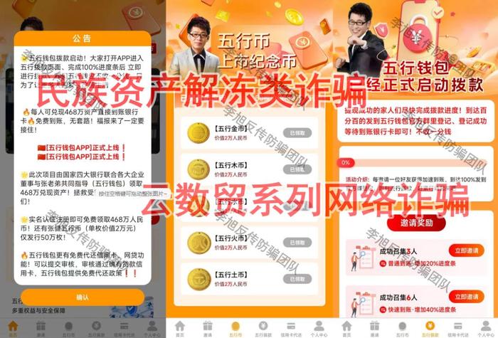 不法分子冒充傳銷組織“云數(shù)貿”的旗號,制作散布涉詐APP,聲稱實名注冊提供個人信息,即可領取468萬資金,五行幣10枚,免費幫人代還信用卡,邀請他人注冊,可領取更多收,減少提現(xiàn)進度。