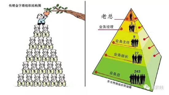 上線人員按照固定的標(biāo)準(zhǔn),對(duì)下線人員繳納的申購(gòu)款進(jìn)行瓜分,其次每個(gè)參加者最多只能發(fā)展3個(gè)直接下線,下線再逐級(jí)發(fā)展形成金字塔形的網(wǎng)絡(luò)層級(jí)結(jié)構(gòu)。】