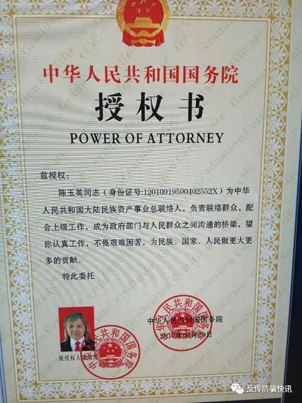 實際上,自2016年8月以來,陳玉英多次接到類似自稱系“最高民族資產(chǎn)解凍委員會”(“上線”)工作人員的電話,然后他們提供類似于“最高民族資產(chǎn)解凍委員會”紅頭文件等假文件,向陳玉英宣稱,在國外銀行有我國被凍結的民族資產(chǎn),需要通過會員出資予以解凍。