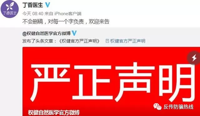 26日,針對權(quán)健公司的聲明,“丁香醫(yī)生”隨即表示,“我們不會刪稿,對每一個字負責(zé)”,甚至表示“歡迎來告”。