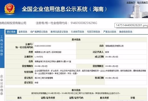 網(wǎng)上查詢海南啟程投資有限公司資質(zhì):