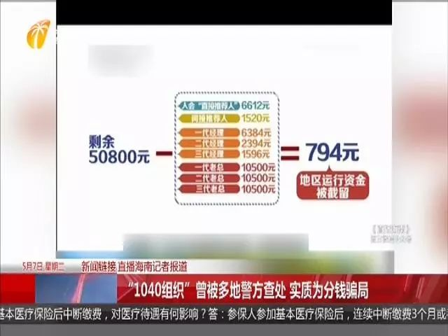 伍某說,1040組織的部分領導是廣東省高州人,曾在高州進行交易,他們已經向當地高州市公安局報案。而記者也從廣東省高州市公安局了解到,1040工程已經被認定為傳銷組織,今年2月份,警方經過縝密部署,抓獲了6名犯罪嫌疑人,3月21日,經檢察院批準,6名嫌疑人被依法執(zhí)行逮捕,目前案件仍在進一步審理當中。