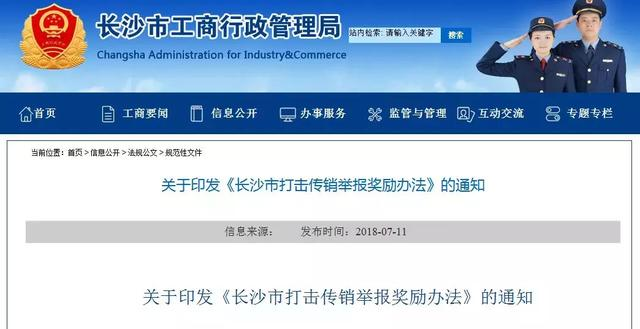 《長(zhǎng)沙市打擊傳銷舉報(bào)獎(jiǎng)勵(lì)辦法》正式實(shí)行