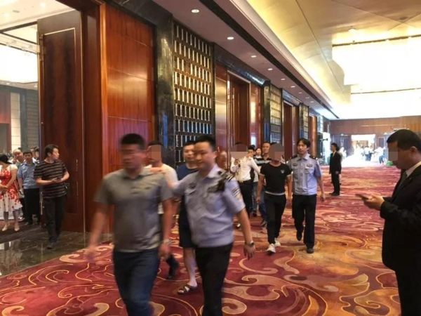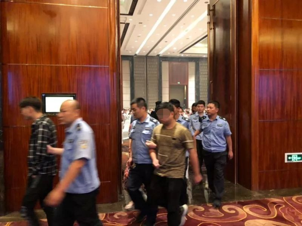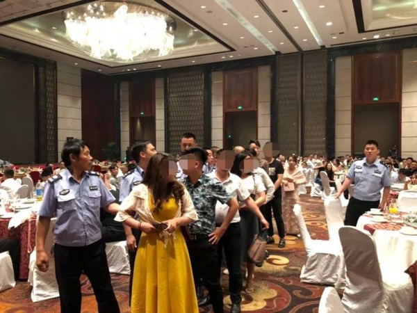 當(dāng)晚6點(diǎn)半,在現(xiàn)場(chǎng)行動(dòng)指揮員的一聲令下,聚集在大廳外的警力迅速進(jìn)入酒店,直撲團(tuán)伙所在的二樓宴會(huì)大廳,以迅雷不及掩耳之勢(shì)將大廳四個(gè)出入大門關(guān)閉,上演了一出“甕中捉鱉”的抓捕大戲,參加聚會(huì)的318名傳銷成員全部落網(wǎng)。