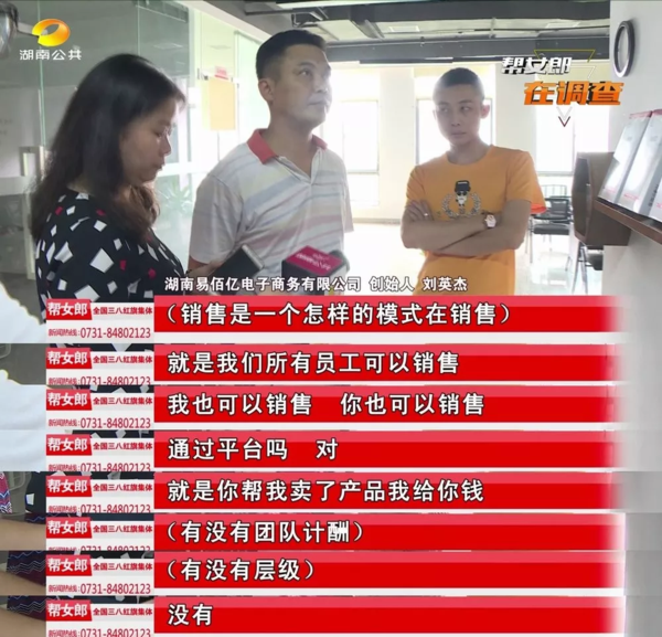 面對(duì)執(zhí)法人員,劉英杰對(duì)公司的層級(jí)、團(tuán)隊(duì)計(jì)酬等銷售模式予以了否認(rèn),而就在幫女郎準(zhǔn)備拿出該公司的宣講視頻時(shí),原本正在開會(huì)的數(shù)十位股東忽然情緒激動(dòng)起來,沖到記者面前,阻止拍攝。 圍困,辱罵,各種不堪入目的名詞充斥著整個(gè)公司,很難想象此刻這些嘴里惡語相向的董事和原始股東們,正是數(shù)天前還站在發(fā)布會(huì)舞臺(tái)上,身著禮服,分享賺錢經(jīng)驗(yàn),喊著要帶會(huì)員們發(fā)家致富的成功人士。對(duì)于湖南易佰億電子商務(wù)有限公司涉嫌傳銷的行為,長沙市高新工商分局也緊急成立調(diào)查小組,對(duì)其展開立案調(diào)查。