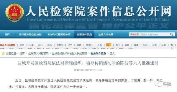 實錘!“PlusToken”傳銷頭目陳波等六人被鹽城檢察院批捕