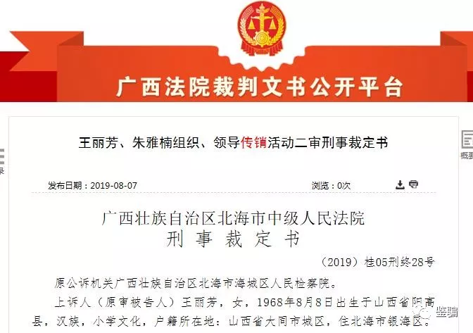 至案發(fā)時,上述各人均已晉升為老總級別,層級達三級以上,其中王麗芳、朱雅楠、朱美鳳、陶慶峰、王瑋、徐焱直接或間接發(fā)展的下線人數(shù)均已超過120人,朱紅、張沖、仝洪梅、黃桂云、包小華、高敏、蔣國慶、黃虹、周麗、馬志清、范廣、楊長青、扈加明、趙利偉、徐占有、劉翠梅、孫涵葦、李敏直接或間接發(fā)展的下線人數(shù)均已超過30人但未達120人。