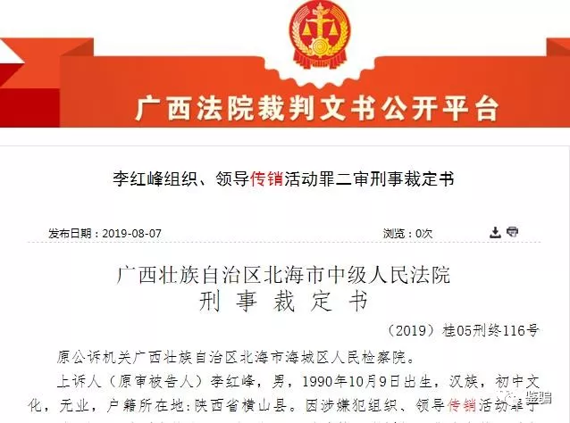 2019年4月12日,海城區(qū)人民法院以組織、領(lǐng)導(dǎo)傳銷活動罪,判處李紅峰有期徒刑二年六個月,并處罰金七十五萬元。